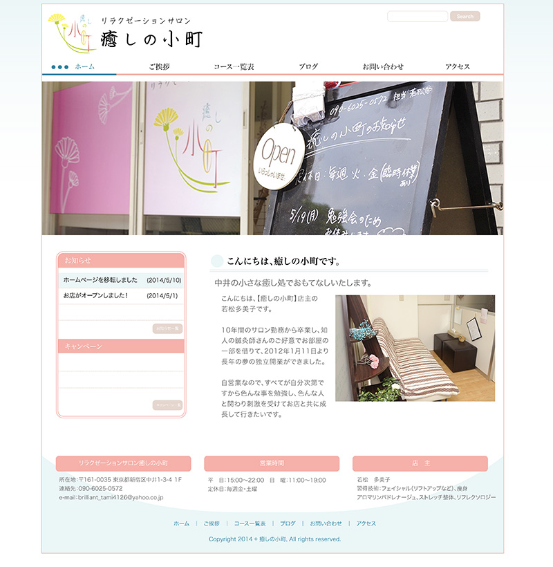 「リラクゼーションサロン 癒しの小町」を運営される若松さまにご依頼いただき、色々とお手伝いさせていただきました。