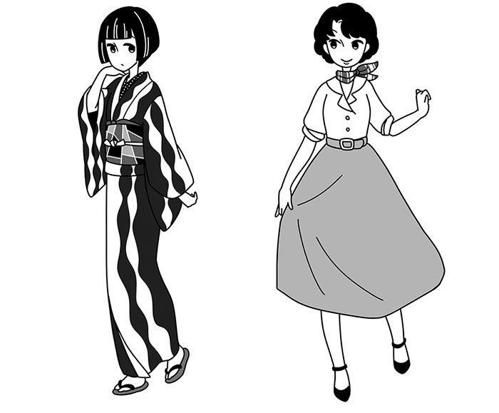 - 4巻から。他にも着物にエプロン、袴の女学生など。