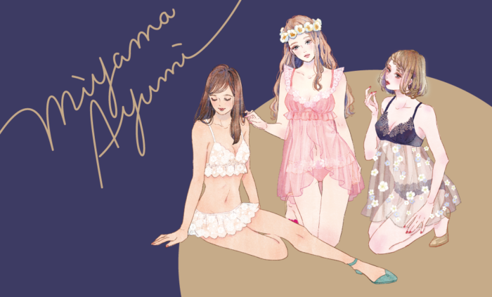 イラストレーターのミヤマアユミ(miya)様の名刺をデザインさせていただきました。 ランジェリーデザインをされた際のイラストをお借りして、大人っぽい女性の雰囲気に合わせてシックに仕上げています。