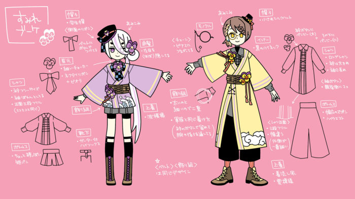 男性Vtuberユニット・Smile Bouquet(すみれブーケ)さまのキャラクターデザインを担当させていただきました。 Youtube:Smile Bouquet※2022年8月6日にユニット活動は終了されています。 https://www.youtube.com/watch?v=4nW8jP9g3Xo
