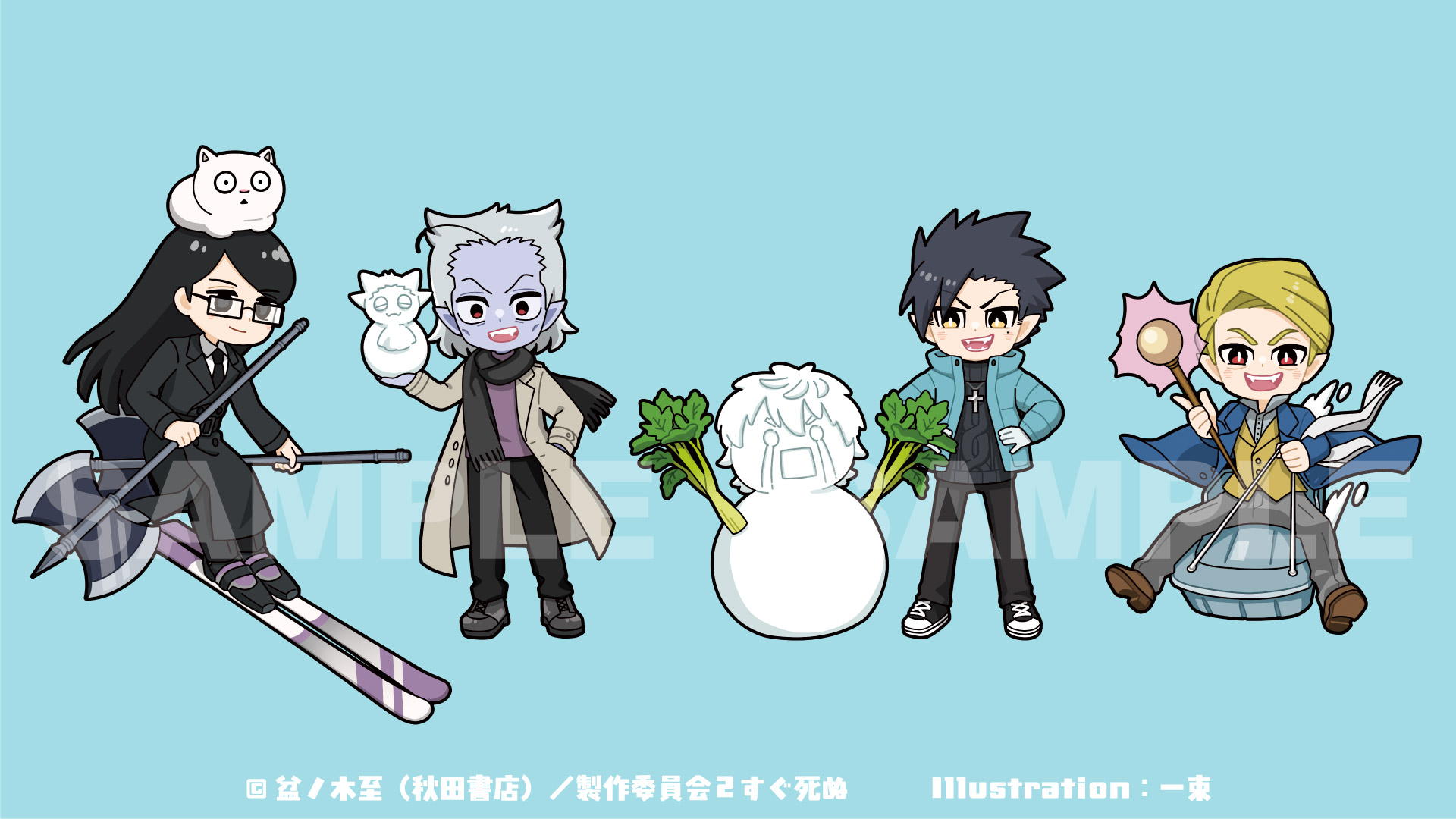 新宿マルイ アネックス7階キャラメキストアにて開催される「吸血鬼すぐ死ぬ2 POP UP SHOP」のグッズ用イラストを担当させていただきました。 「雪遊び」をテーマにテーマにキュートでユニークな面々を描かせていただいています。