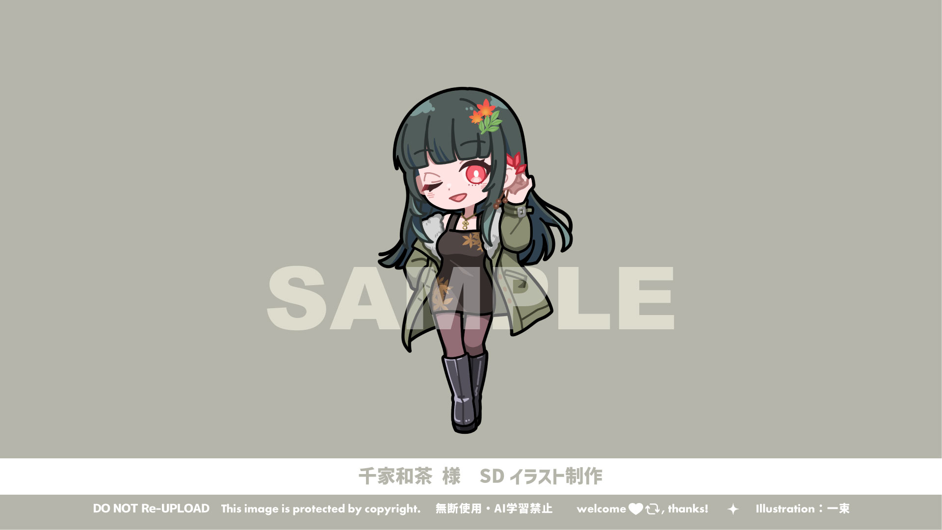 Li:start所属、IRIAMにて配信活動をされている、千家和茶様のSDイラストを担当させていただきました。