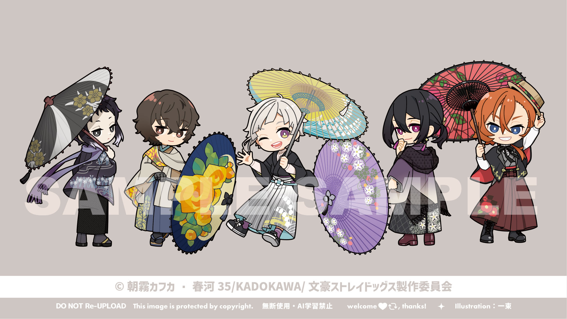 GRANUP様から発売のTVアニメ「文豪ストレイドッグス」より、【華傘】シリーズのミニキャライラストを担当させていただきました。
